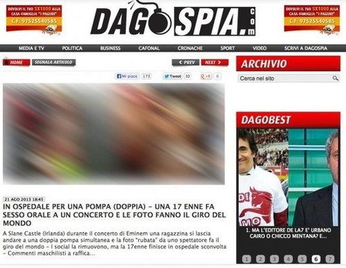 Dagospia è l’unico sito al mondo che ha mantenuto la foto dello scandalo al concerto di Eminem